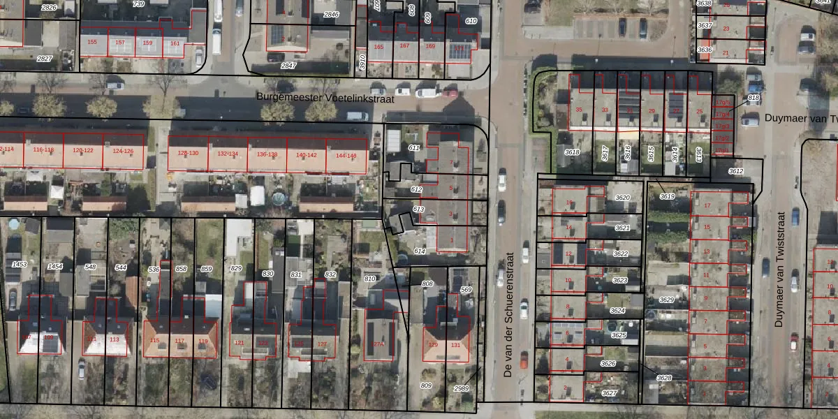 Gebruik de zoekbalk of klik op een perceel om informatie over het perceel te bekijken.