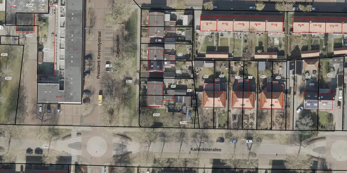 Gebruik de zoekbalk of klik op een perceel om informatie over het perceel te bekijken.