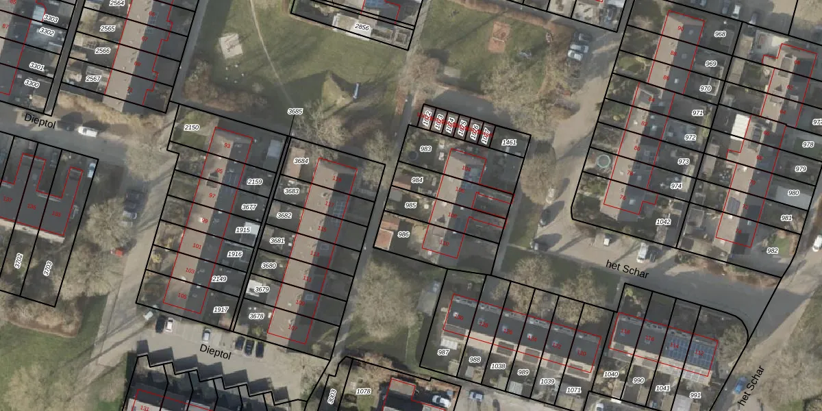 Gebruik de zoekbalk of klik op een perceel om informatie over het perceel te bekijken.