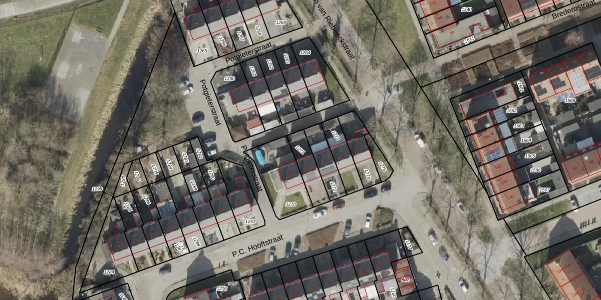 Gebruik de zoekbalk of klik op een perceel om informatie over het perceel te bekijken.