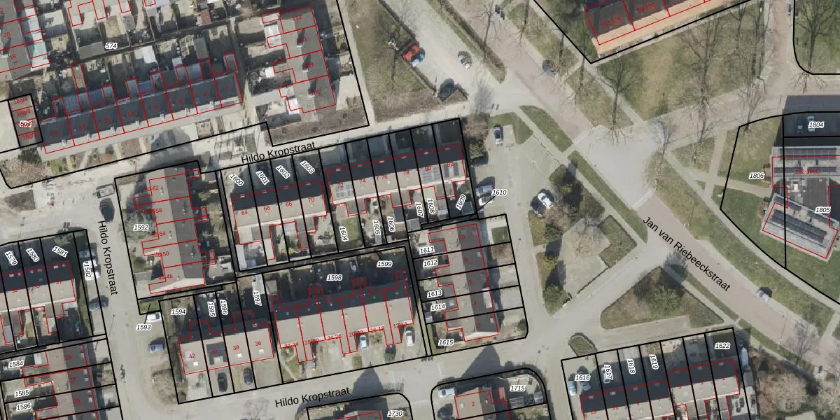 Gebruik de zoekbalk of klik op een perceel om informatie over het perceel te bekijken.