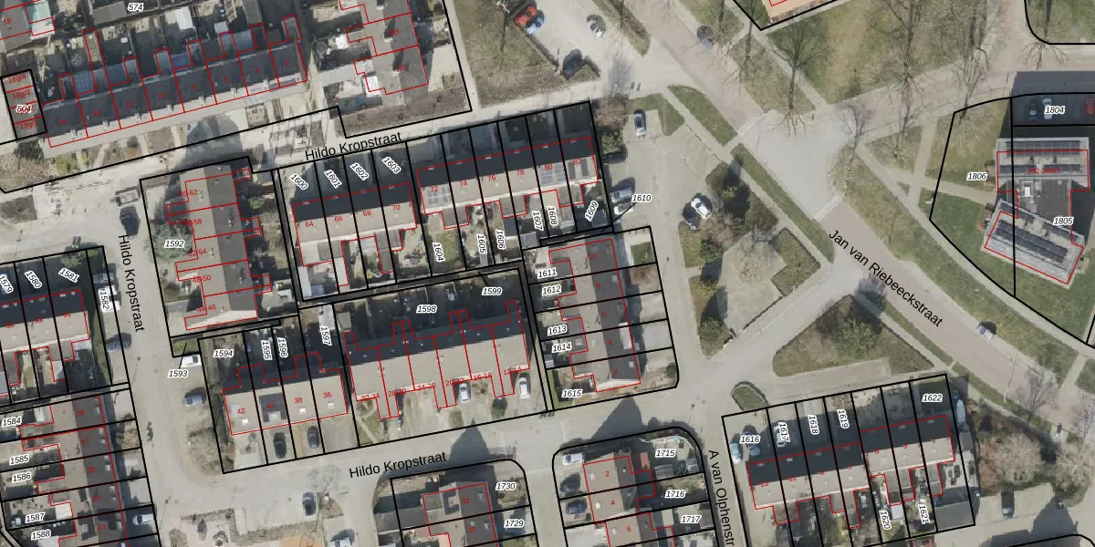 Gebruik de zoekbalk of klik op een perceel om informatie over het perceel te bekijken.