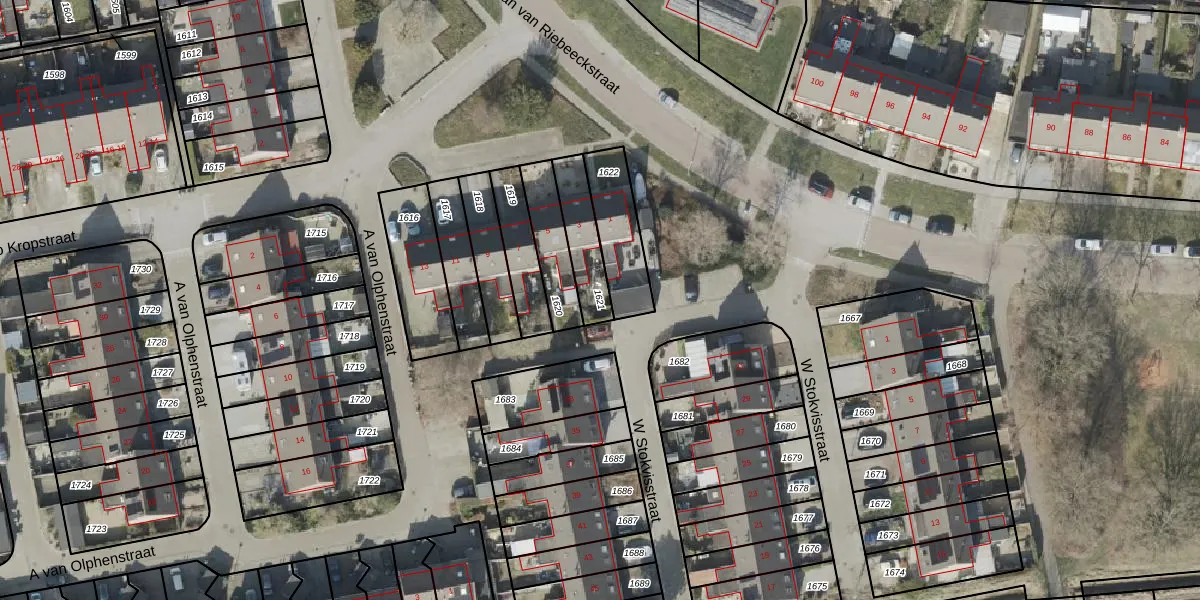 Gebruik de zoekbalk of klik op een perceel om informatie over het perceel te bekijken.