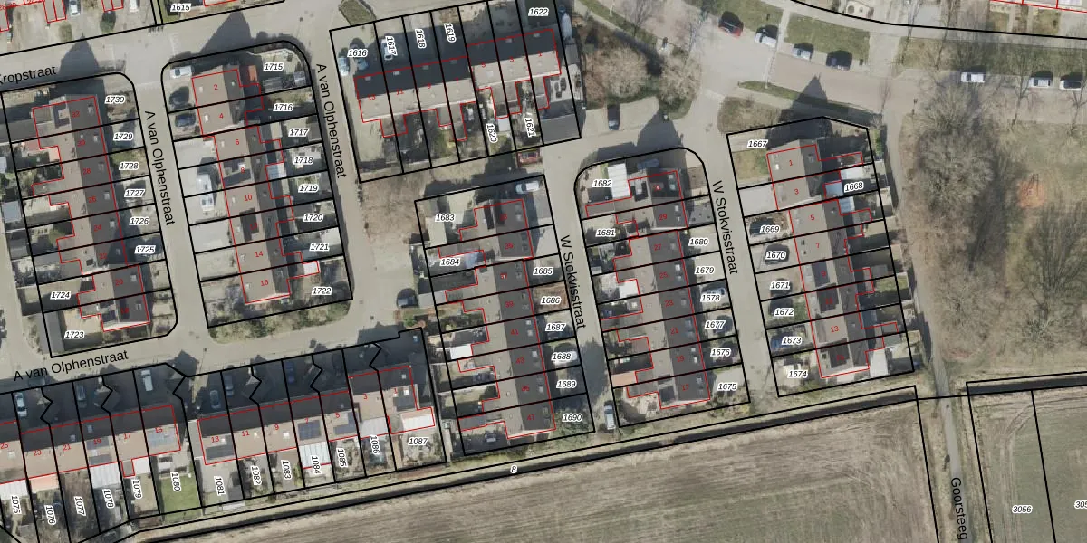Gebruik de zoekbalk of klik op een perceel om informatie over het perceel te bekijken.