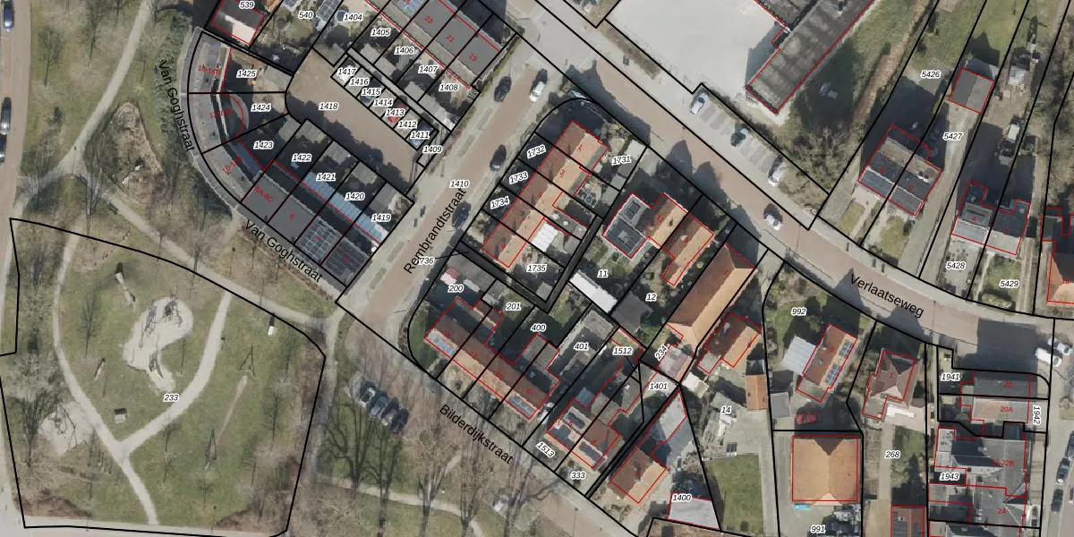 Gebruik de zoekbalk of klik op een perceel om informatie over het perceel te bekijken.