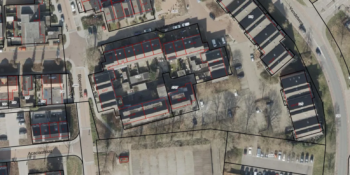 Gebruik de zoekbalk of klik op een perceel om informatie over het perceel te bekijken.