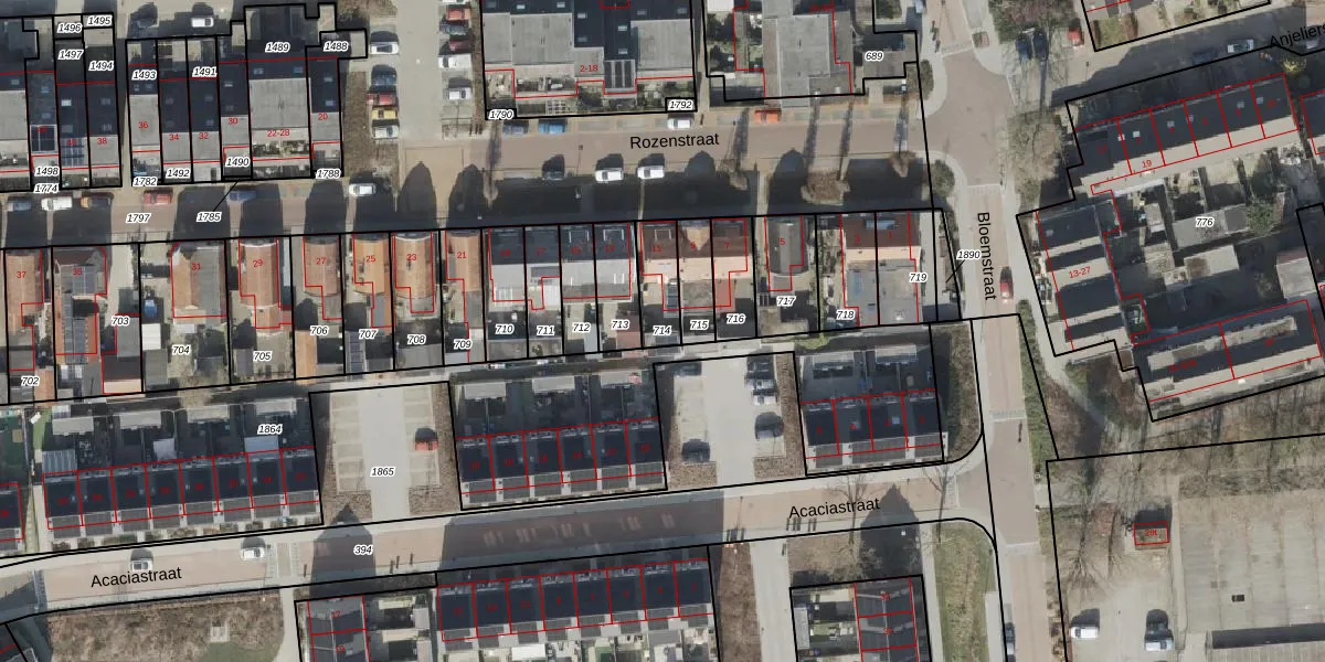 Gebruik de zoekbalk of klik op een perceel om informatie over het perceel te bekijken.