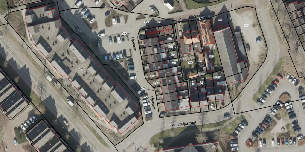 Gebruik de zoekbalk of klik op een perceel om informatie over het perceel te bekijken.