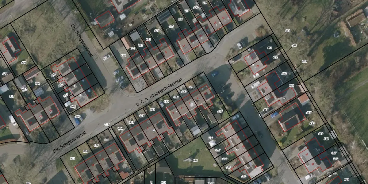 Gebruik de zoekbalk of klik op een perceel om informatie over het perceel te bekijken.