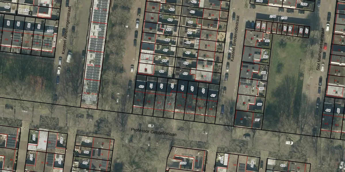 Gebruik de zoekbalk of klik op een perceel om informatie over het perceel te bekijken.