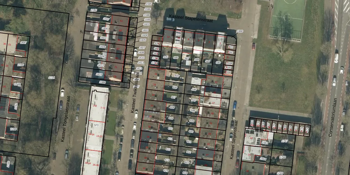 Gebruik de zoekbalk of klik op een perceel om informatie over het perceel te bekijken.