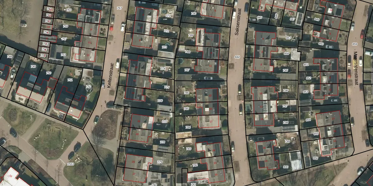 Gebruik de zoekbalk of klik op een perceel om informatie over het perceel te bekijken.