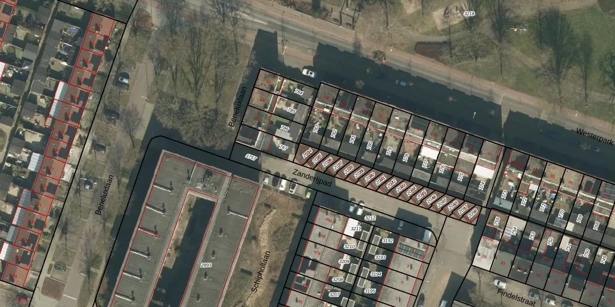 Gebruik de zoekbalk of klik op een perceel om informatie over het perceel te bekijken.
