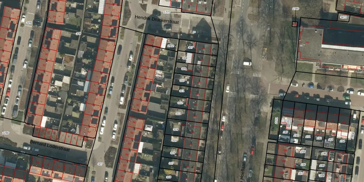 Gebruik de zoekbalk of klik op een perceel om informatie over het perceel te bekijken.