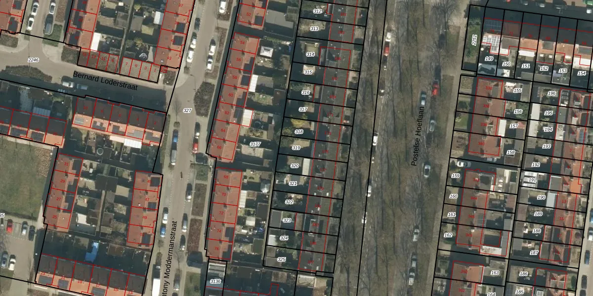 Gebruik de zoekbalk of klik op een perceel om informatie over het perceel te bekijken.