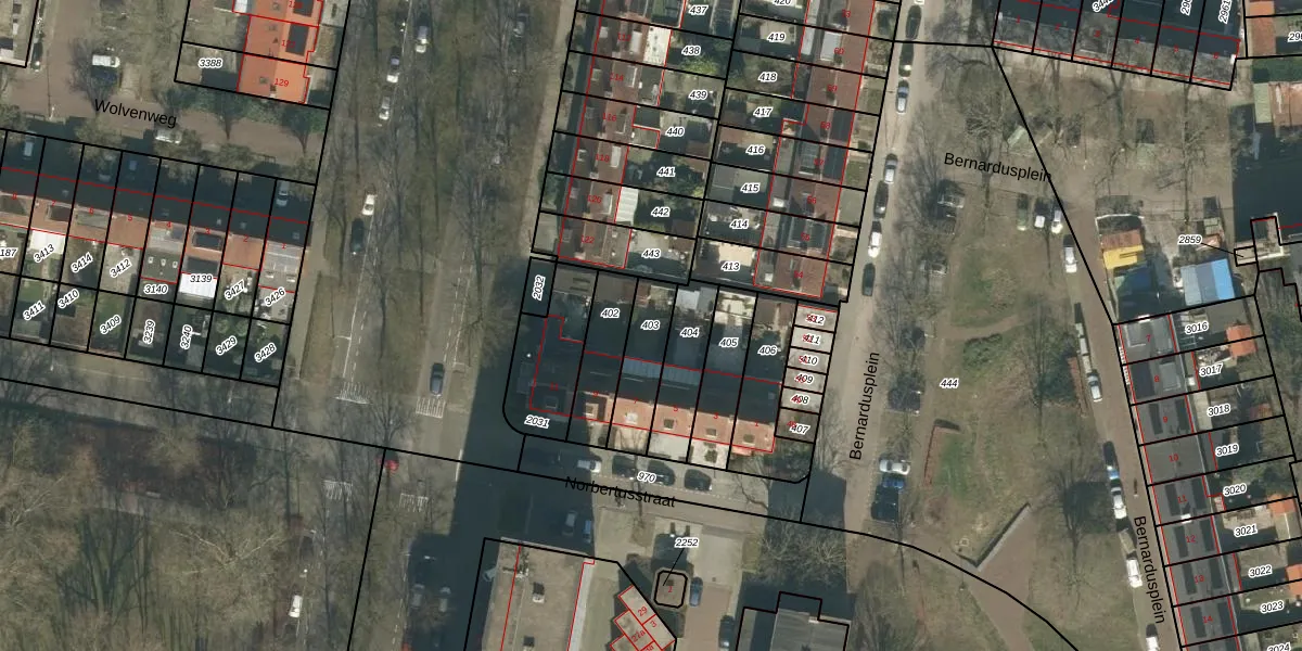 Gebruik de zoekbalk of klik op een perceel om informatie over het perceel te bekijken.