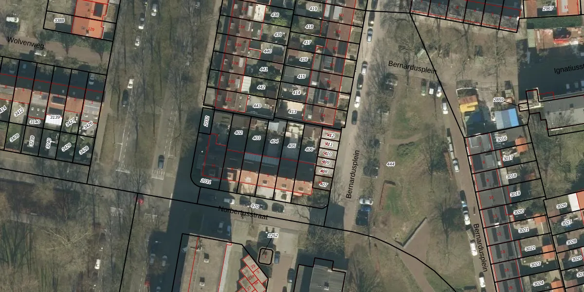 Gebruik de zoekbalk of klik op een perceel om informatie over het perceel te bekijken.