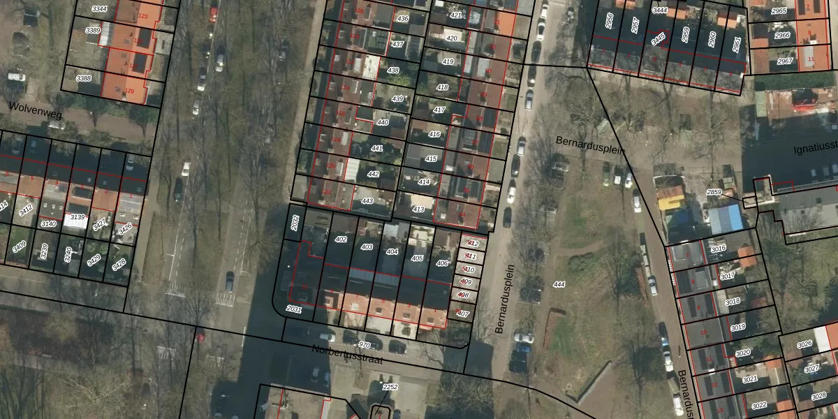 Gebruik de zoekbalk of klik op een perceel om informatie over het perceel te bekijken.