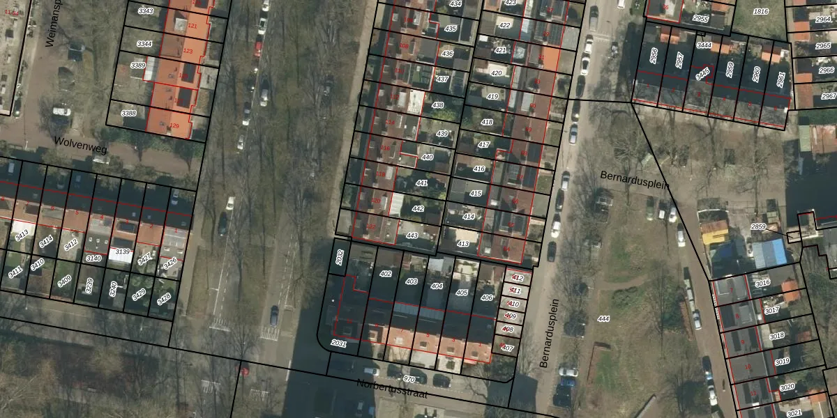 Gebruik de zoekbalk of klik op een perceel om informatie over het perceel te bekijken.