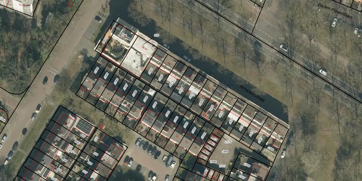 Gebruik de zoekbalk of klik op een perceel om informatie over het perceel te bekijken.