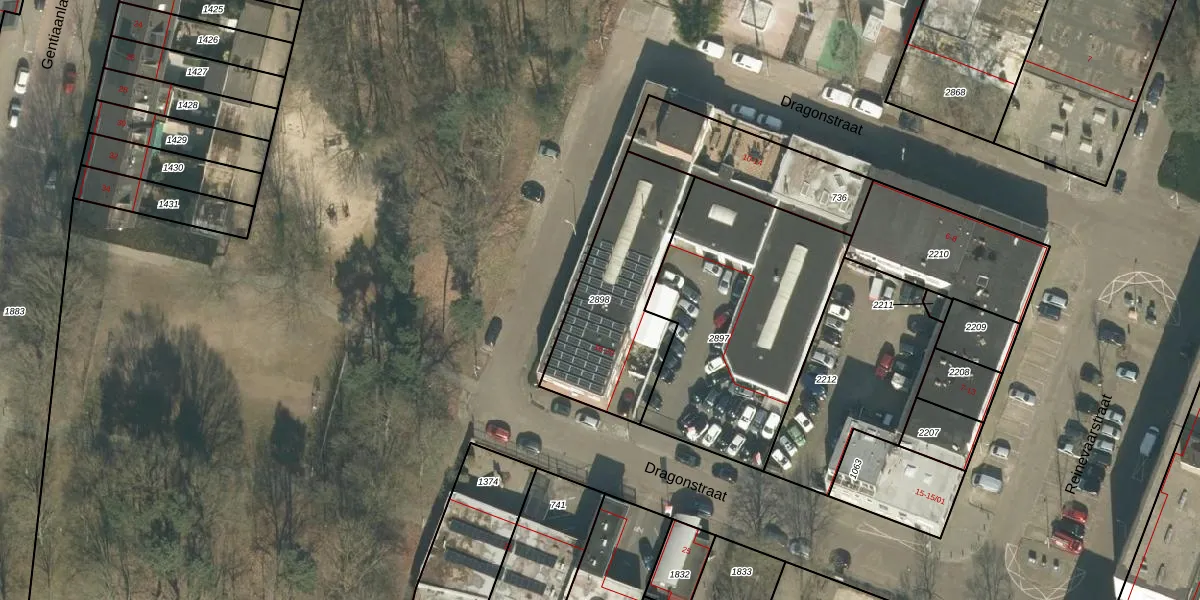 Gebruik de zoekbalk of klik op een perceel om informatie over het perceel te bekijken.