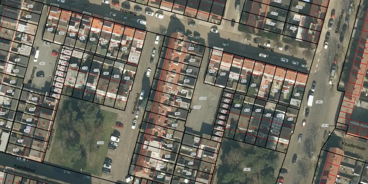 Gebruik de zoekbalk of klik op een perceel om informatie over het perceel te bekijken.