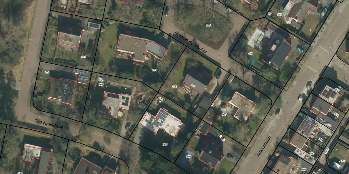 Gebruik de zoekbalk of klik op een perceel om informatie over het perceel te bekijken.