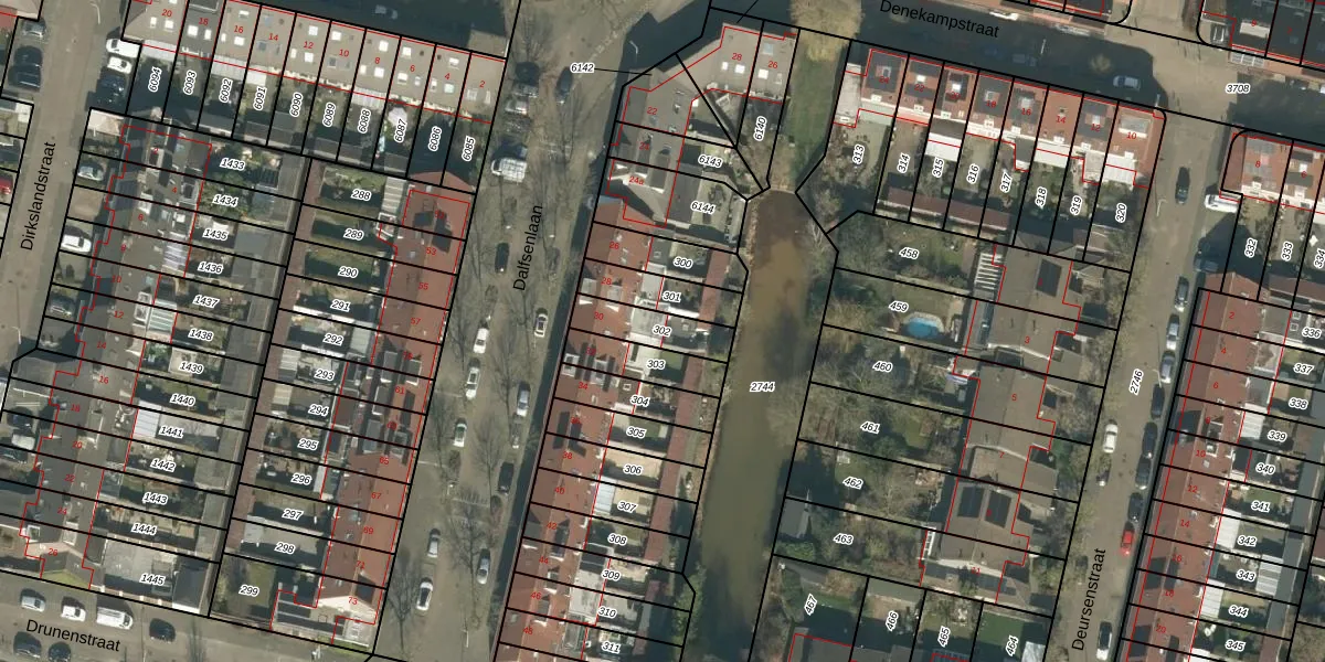 Gebruik de zoekbalk of klik op een perceel om informatie over het perceel te bekijken.