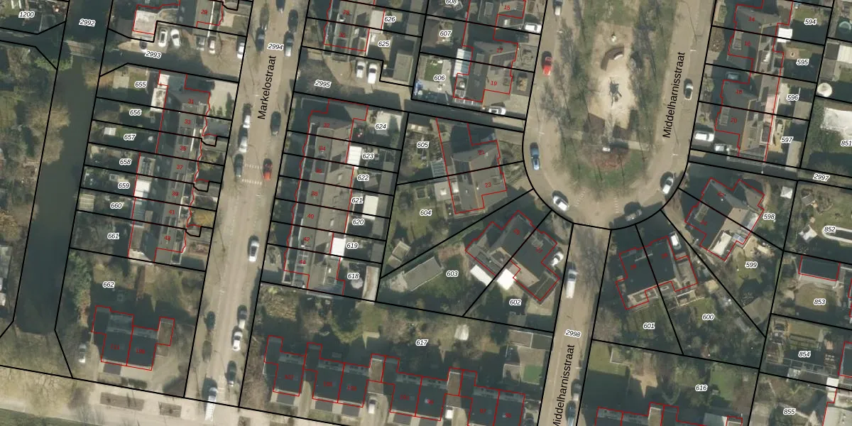 Gebruik de zoekbalk of klik op een perceel om informatie over het perceel te bekijken.