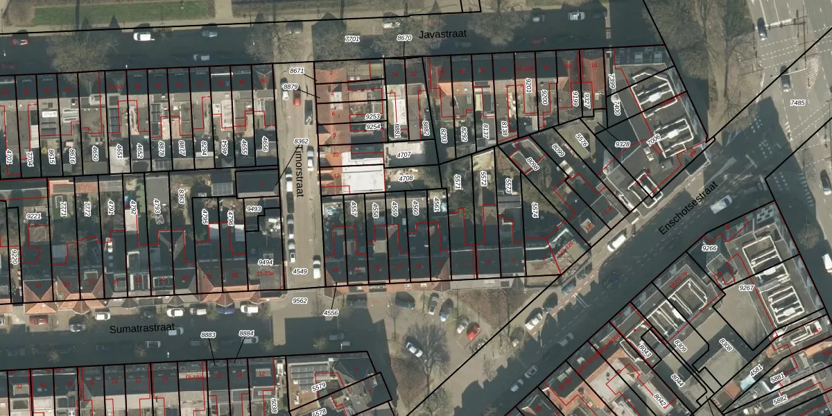Gebruik de zoekbalk of klik op een perceel om informatie over het perceel te bekijken.