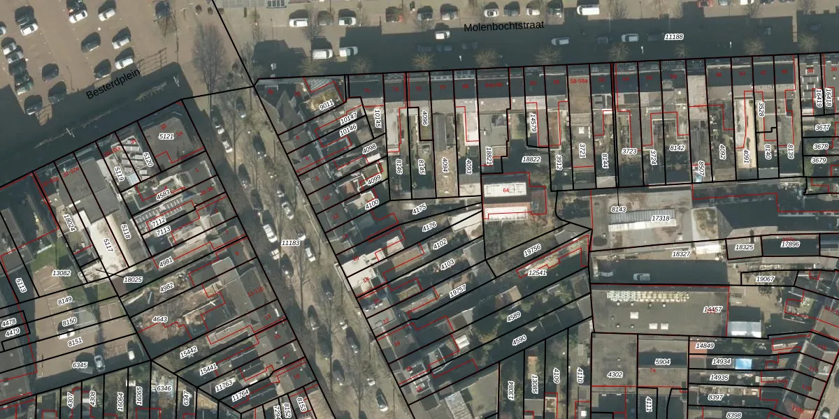 Gebruik de zoekbalk of klik op een perceel om informatie over het perceel te bekijken.