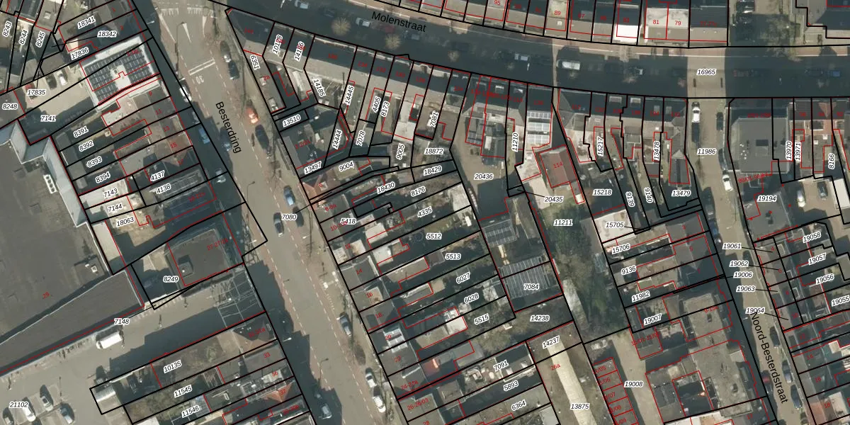 Gebruik de zoekbalk of klik op een perceel om informatie over het perceel te bekijken.