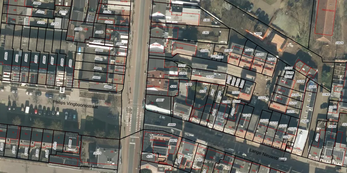Gebruik de zoekbalk of klik op een perceel om informatie over het perceel te bekijken.