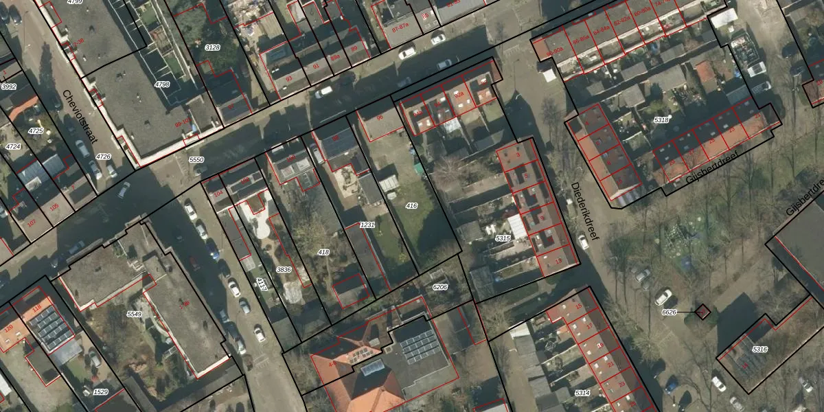 Gebruik de zoekbalk of klik op een perceel om informatie over het perceel te bekijken.
