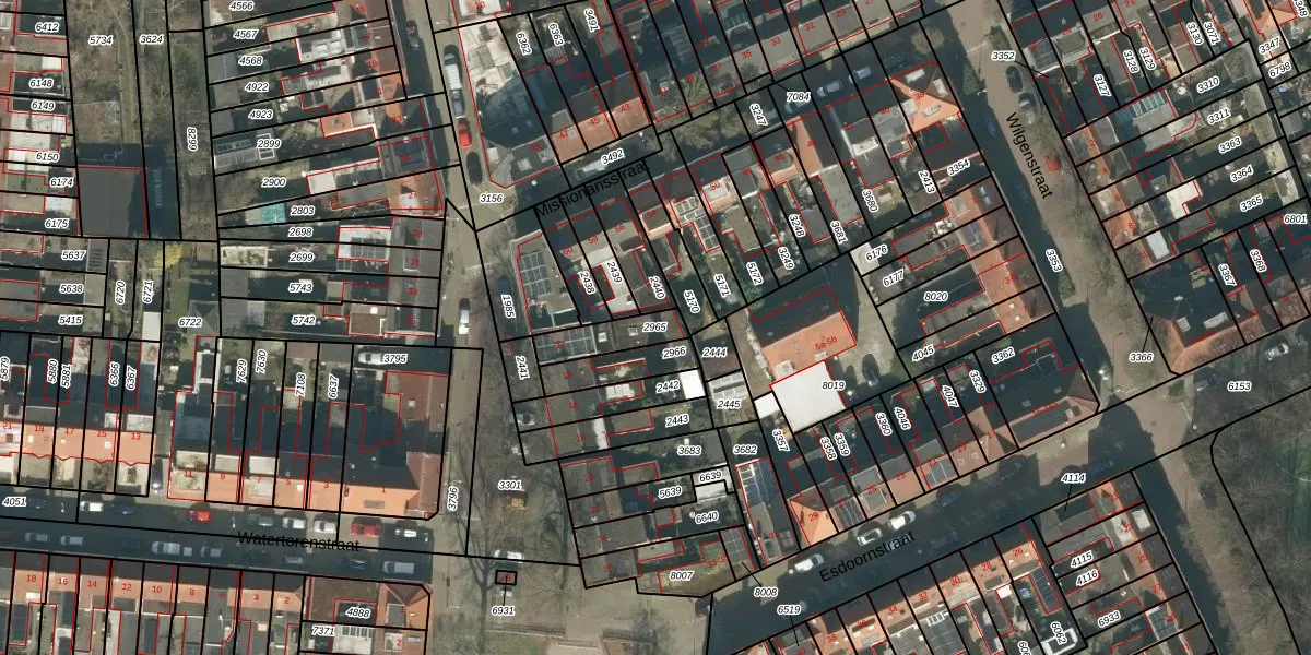 Gebruik de zoekbalk of klik op een perceel om informatie over het perceel te bekijken.