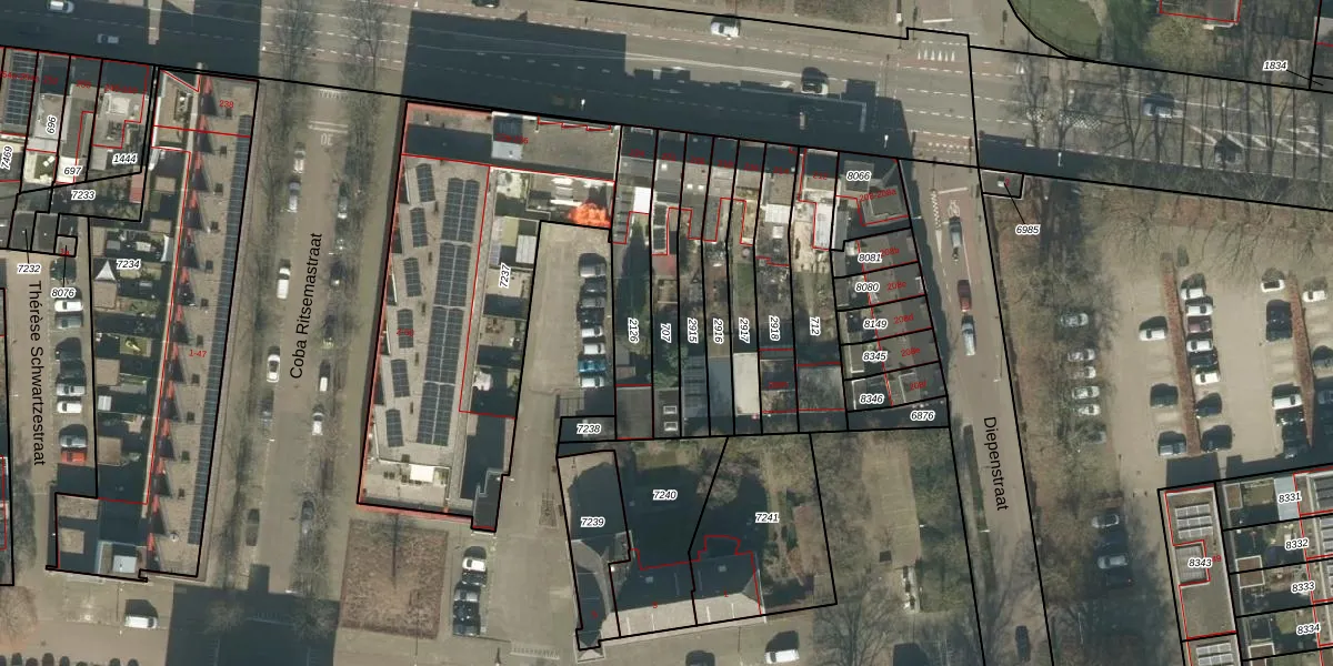 Gebruik de zoekbalk of klik op een perceel om informatie over het perceel te bekijken.