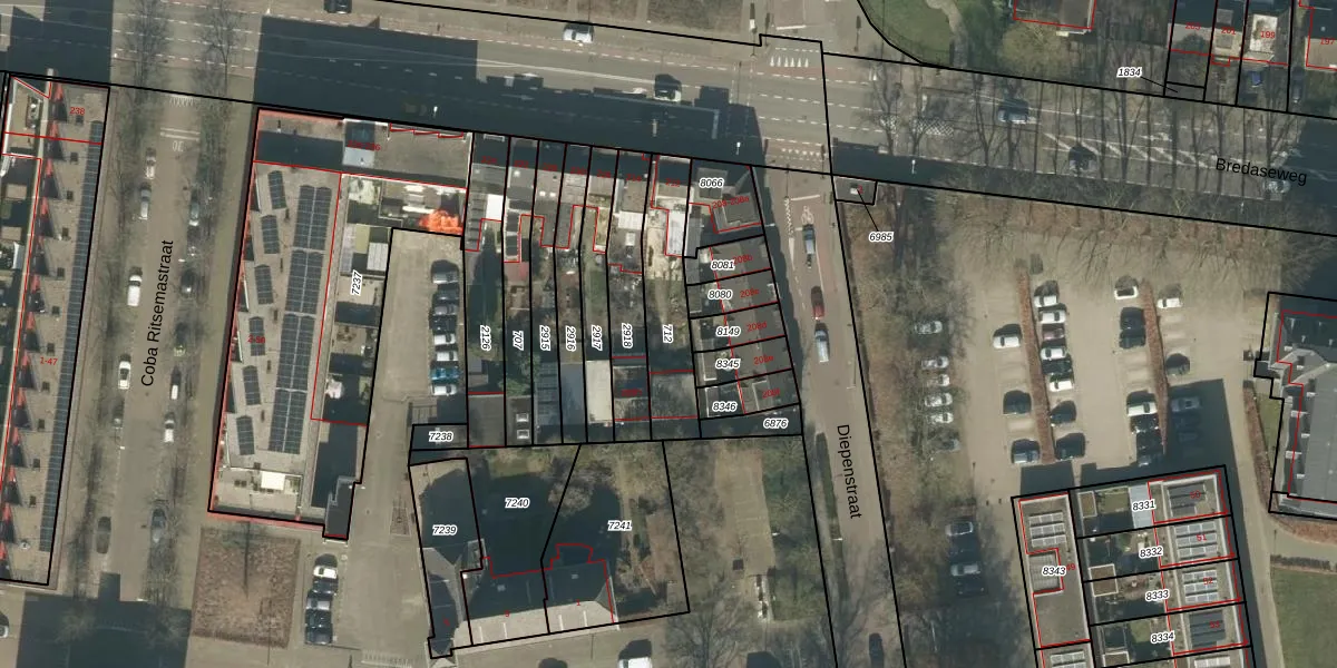 Gebruik de zoekbalk of klik op een perceel om informatie over het perceel te bekijken.