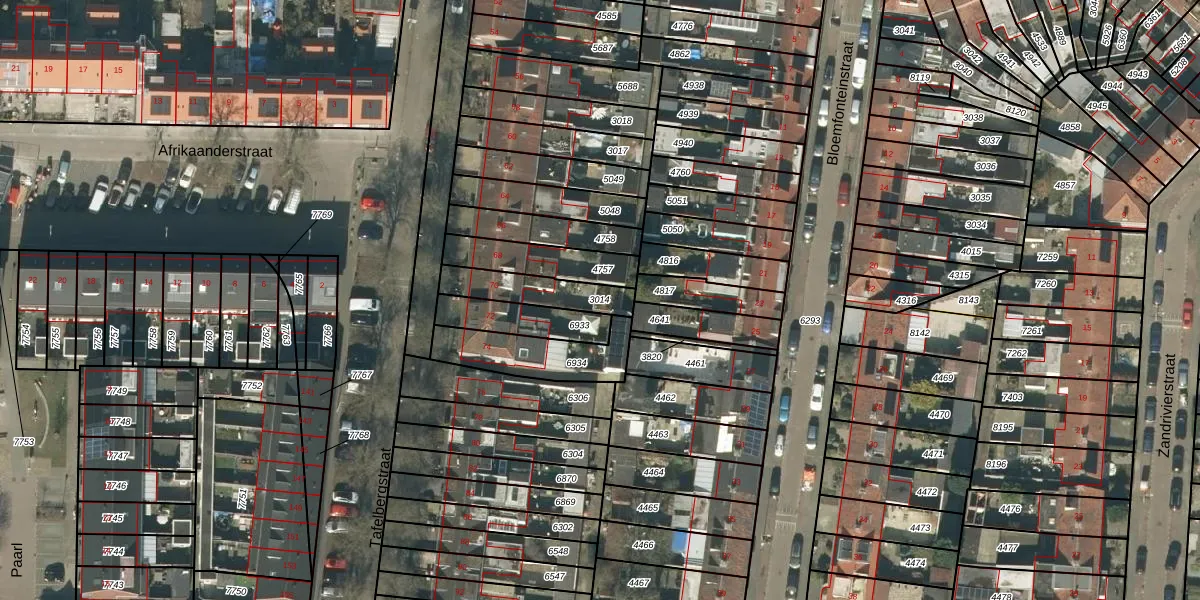 Gebruik de zoekbalk of klik op een perceel om informatie over het perceel te bekijken.