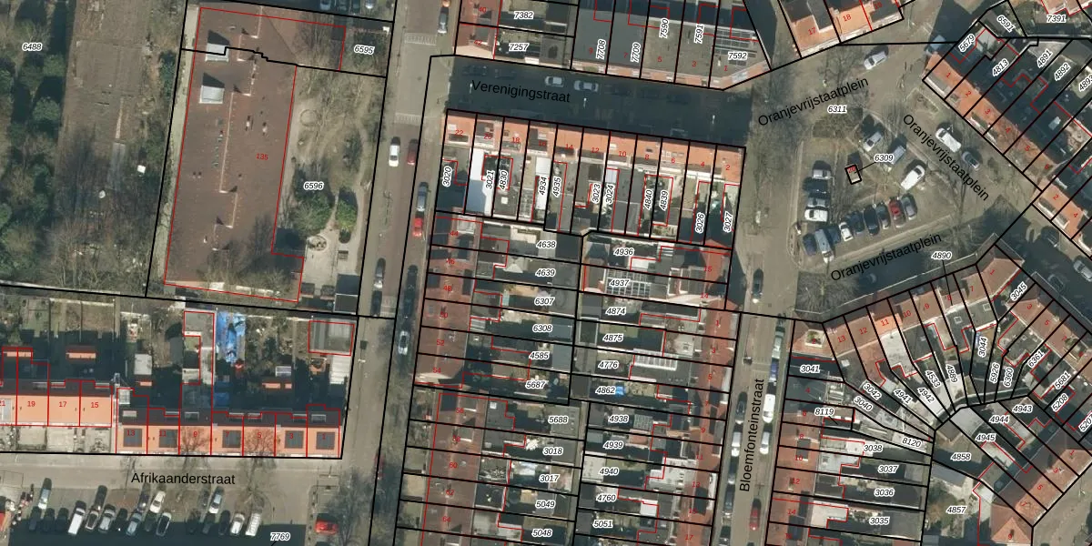 Gebruik de zoekbalk of klik op een perceel om informatie over het perceel te bekijken.