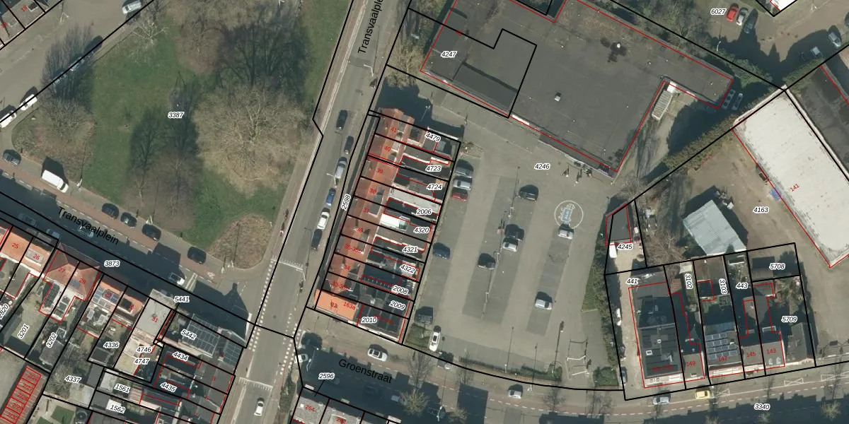 Gebruik de zoekbalk of klik op een perceel om informatie over het perceel te bekijken.