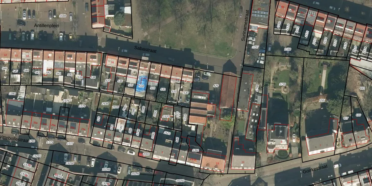 Gebruik de zoekbalk of klik op een perceel om informatie over het perceel te bekijken.