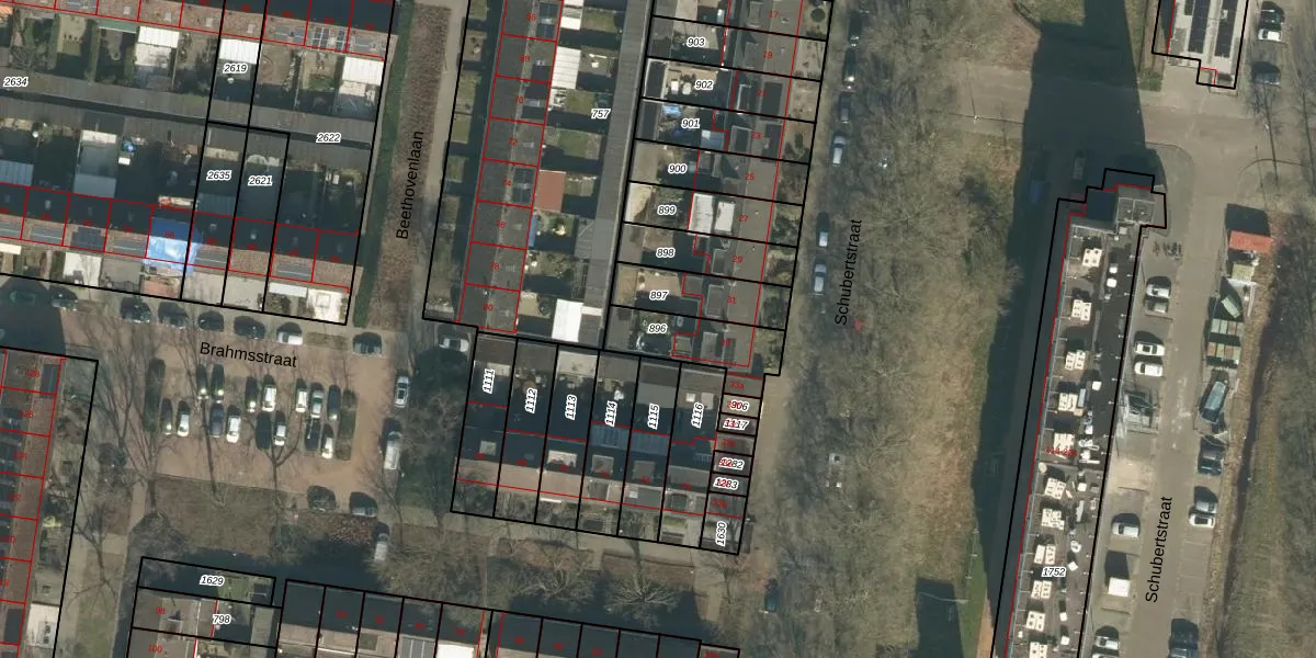 Gebruik de zoekbalk of klik op een perceel om informatie over het perceel te bekijken.