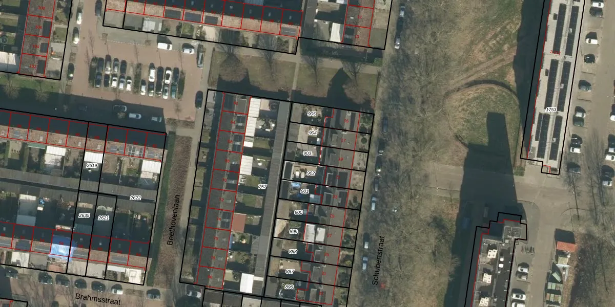 Gebruik de zoekbalk of klik op een perceel om informatie over het perceel te bekijken.