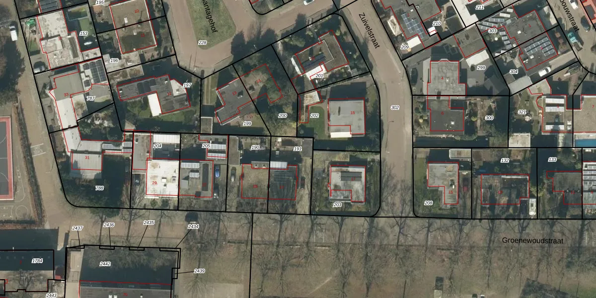 Gebruik de zoekbalk of klik op een perceel om informatie over het perceel te bekijken.