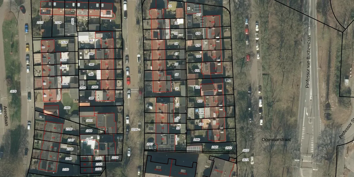 Gebruik de zoekbalk of klik op een perceel om informatie over het perceel te bekijken.