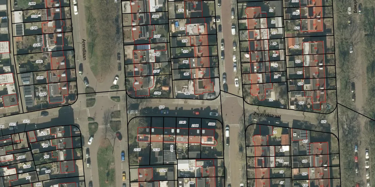 Gebruik de zoekbalk of klik op een perceel om informatie over het perceel te bekijken.