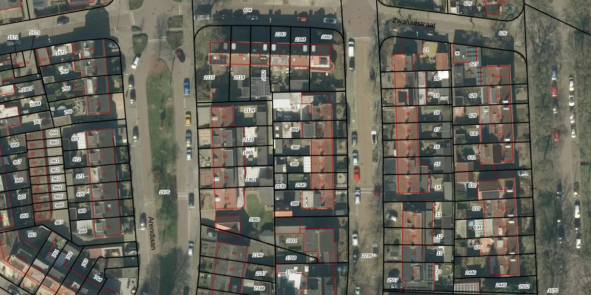Gebruik de zoekbalk of klik op een perceel om informatie over het perceel te bekijken.