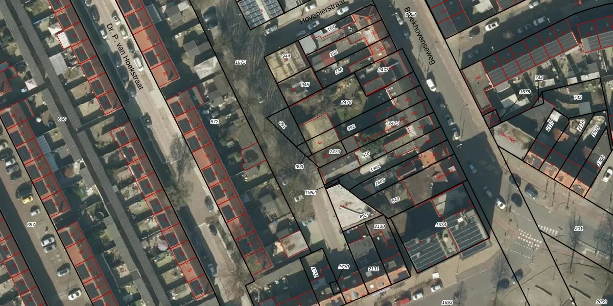 Gebruik de zoekbalk of klik op een perceel om informatie over het perceel te bekijken.