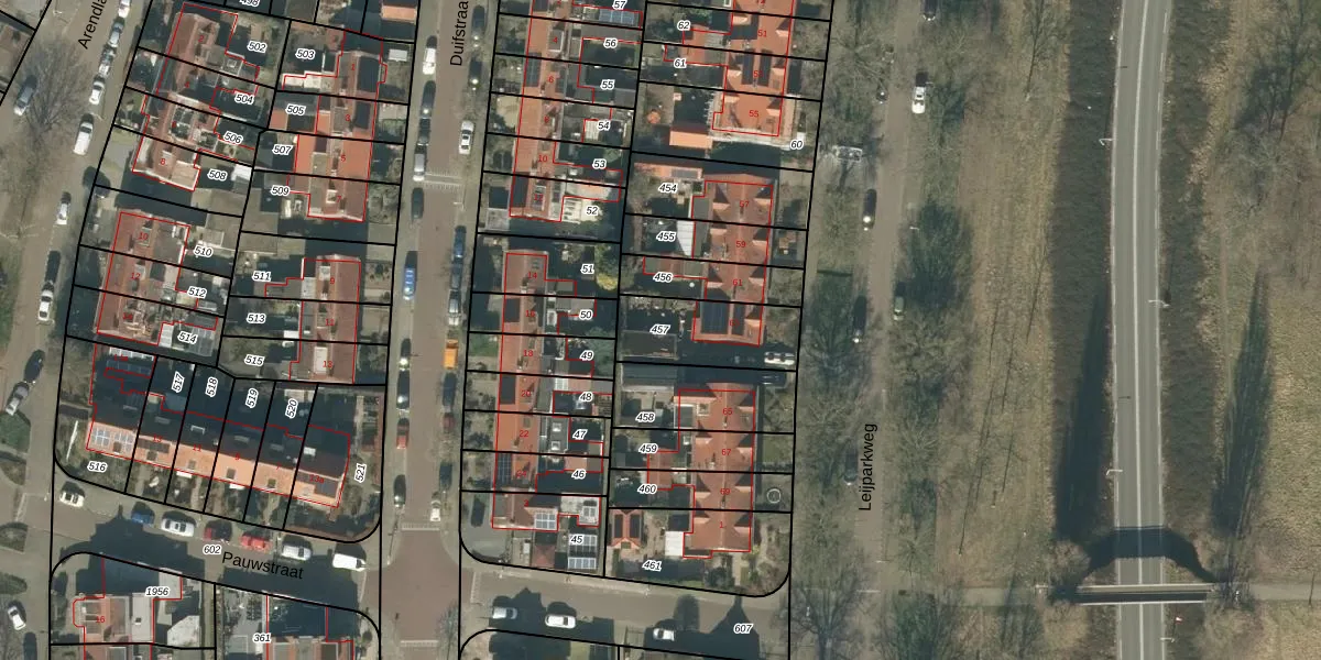 Gebruik de zoekbalk of klik op een perceel om informatie over het perceel te bekijken.