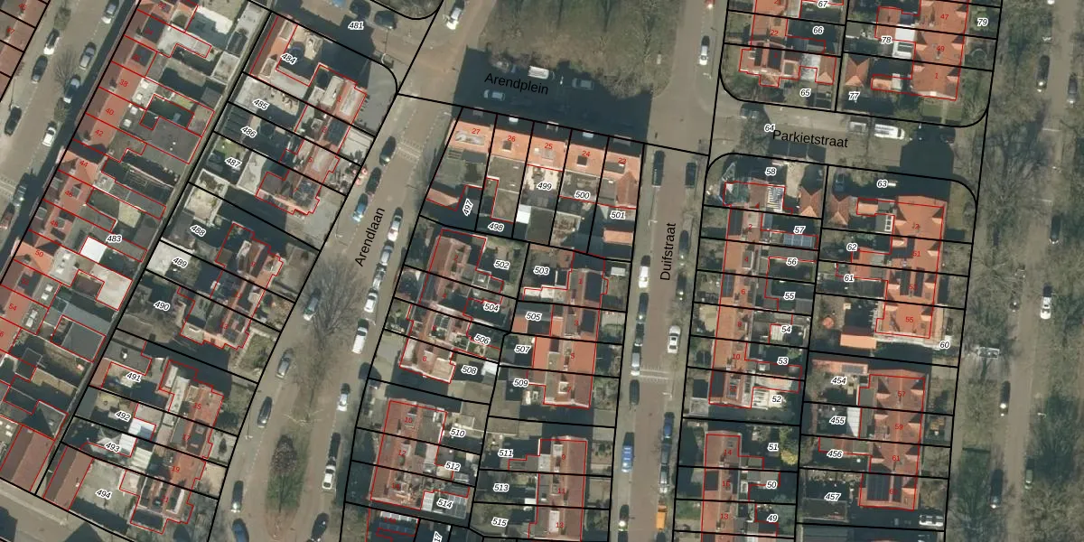 Gebruik de zoekbalk of klik op een perceel om informatie over het perceel te bekijken.